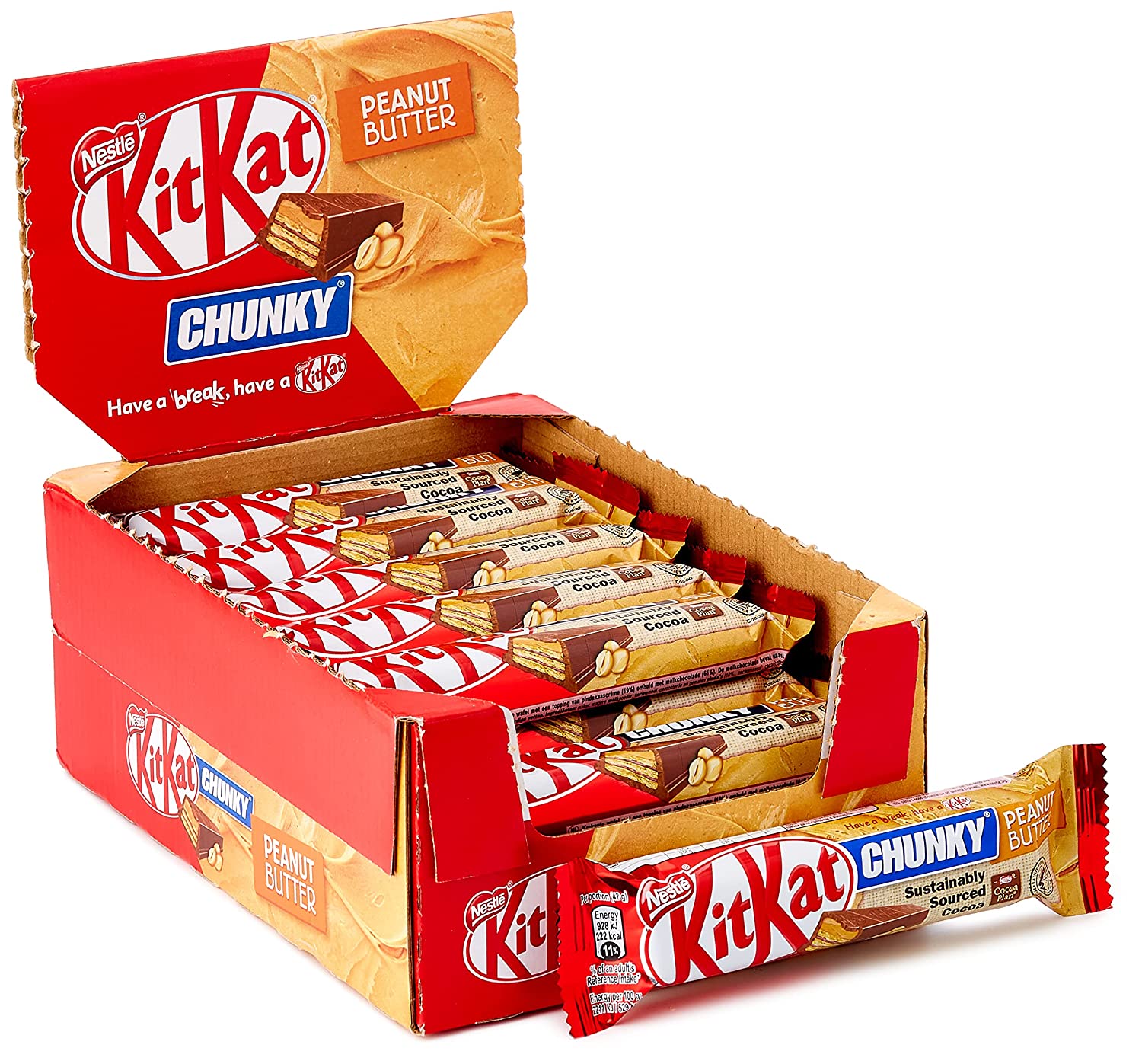 - Lieferumfang: Die Großpackung enthält 24 einzeln verpackte KITKAT CHUNKY Peanut Butter Riegel, ideal zum Verschenken oder als Thekendisplay einsetzbar