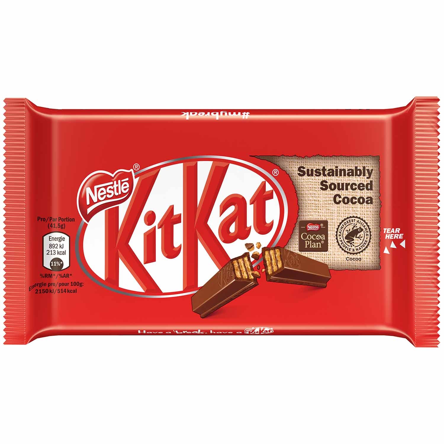 Der Snack für die kurze Pause. KitKat Classic sind knusprige, längliche Waffeln in zarter Vollmilchschokolade. Der unvergleichlich cremig-knackige Riegel lässt sich in 4 Einzelriegel "knacken" und ist ideal für unterwegs und zum Teilen geeignet.
