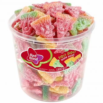 Fido Dido zeigt Gesicht. Bei Red Band Fido Dido Super Sauer hat die vor allem in Süd-Europa bekannte Comicfigur einen ganz besonderen Auftritt. Außen gezuckert, innen fruchtig verbindet Fido Dido in dieser Ausgabe Saures mit Süßem in zwei Varianten und ist immer ein gern gesehener Hauptdarsteller, wenn es um leckeren Fruchtgummi-Spaß geht.