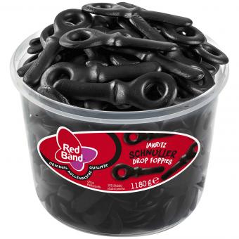 Für alle Altersklassen. Red Band Lakritz Schnuller bieten intensiven und aromatischen Kaugenuss in besonderer Form. Mit dem kräftigen Geschmack der Süßholzwurzel sind die ca. 10 cm langen Schnuller aus Lakritz ein Leckerbissen für die ganze Familie.